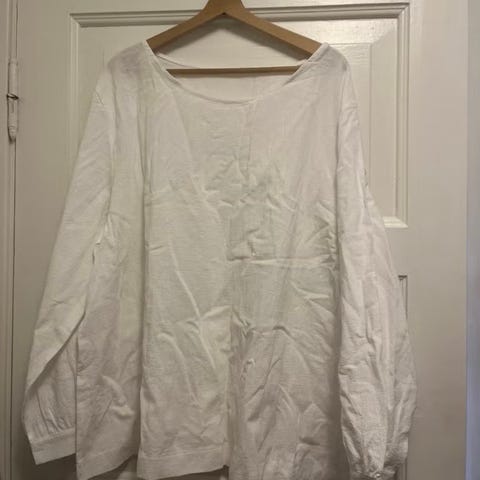 Nydelig hvit storskjorte str 4 XL ,67 cm underarm -underarm , ikke brukt .160kr, står ikke merke i den