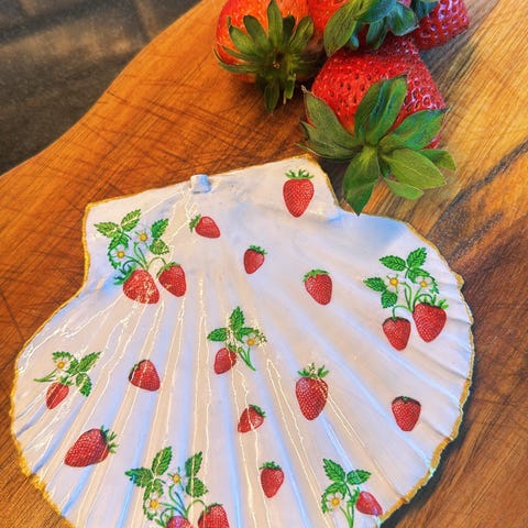 5 veldig flotte og sjeldne kamskjell-asjetter/tallerkener med snegledekor i keramikk/terrakotta selges samlet for kr 1000,-.