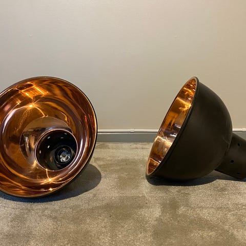 Begge lampene fungerer. Ledningene er litt gulnet og kan med fordel byttes.