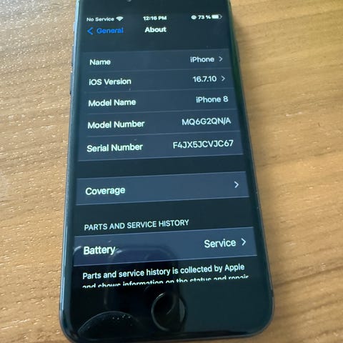 selger denne iPhone 8 med ukjent lagringskapasitet, jeg tror det var 32 GB, men er usikker.