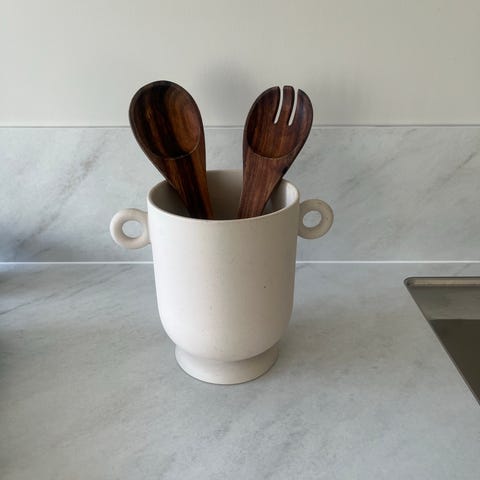 H&M Home keramisk krydderikrukke formet som et hus, i beige farge. Passer til oppbevaring av krydder eller små kjøkkenartikler.