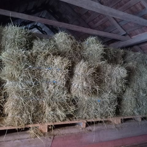 Høyet er presset i små firkantballer på ca 18 kg,