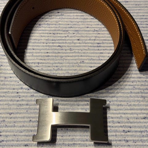 Hermès H Belt Reversible Skinnbelte Unisex Oransje/Svart- 95cm