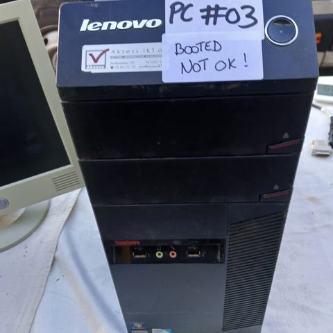 Lenovo ThinkCentre stasjonær PC i kompakt SFF-format. Maskinen slår seg på, men viser feilmeldingen "BOOTMGR is missing" og starter derfor ikke opp Windows. Selges som den er, uten garanti.