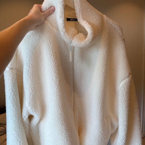 Teddygenser farge offwhite str.S med glidelås foran selges