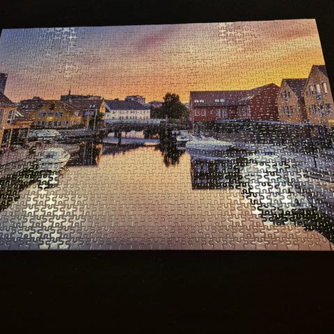 Lindesnes Fyr puslespill som viser Norges eldste fyr, første gang bygget i 1655. Puslespillet har motiv av fyrtårnet og inkluderer informasjon om avstander til flere byer.