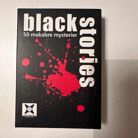 Black Stories Brettspill med kort og gåter for å løse mysterier. Spillet inneholder flere kort med historier som spillere skal løse ved å stille spørsmål. Passer for bruk i sosiale sammenkomster og spillkvelder.