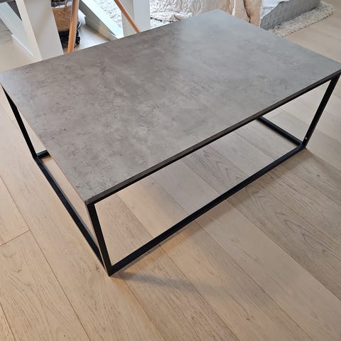 Stuebord selges. Opprinnelig svart plate, men har foliert med folie fra Lindas dekor. Denne kan tas av, evt folieres over. Noe slitt i folien på hjørnene.