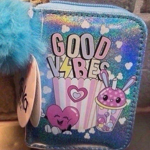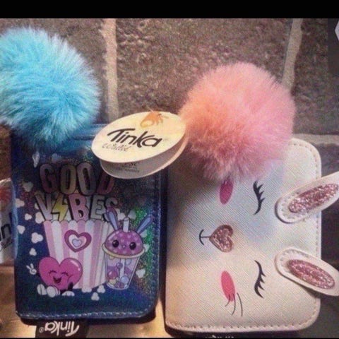 Lommebøk fra Tinka i regnbuefarge og rosa dusk.