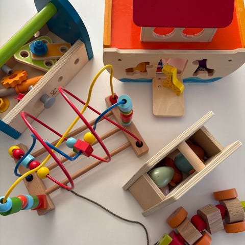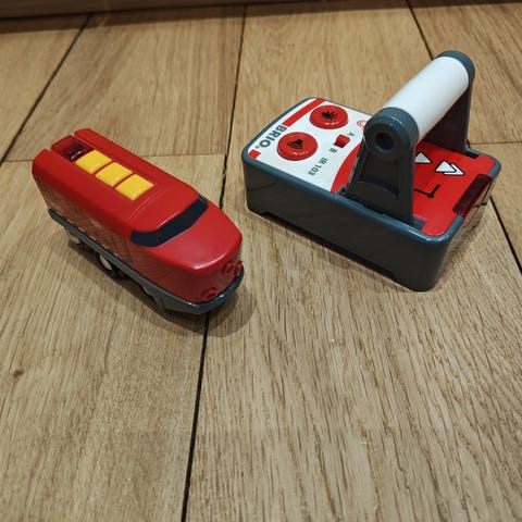 Det er to brio biler. Den ene er RC den andre er treleke.