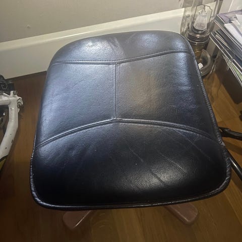 Fotkrakk fra Ekornes, farge mørk burgunder og lyst understell.