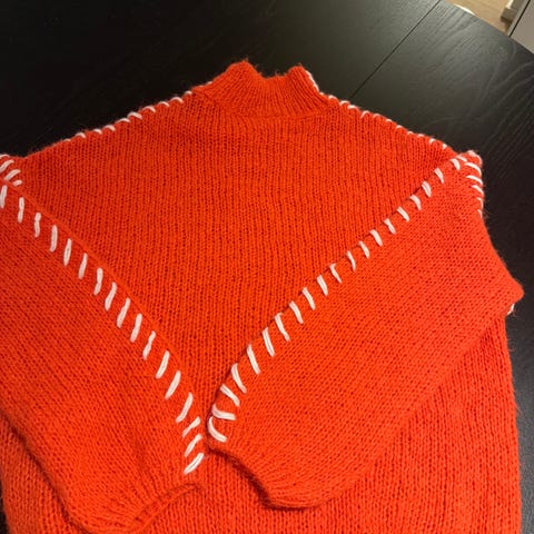 Legger ved bilder av annen farge også for å vise hvordan den ser ut på da genseren ligger innpakket i plast.