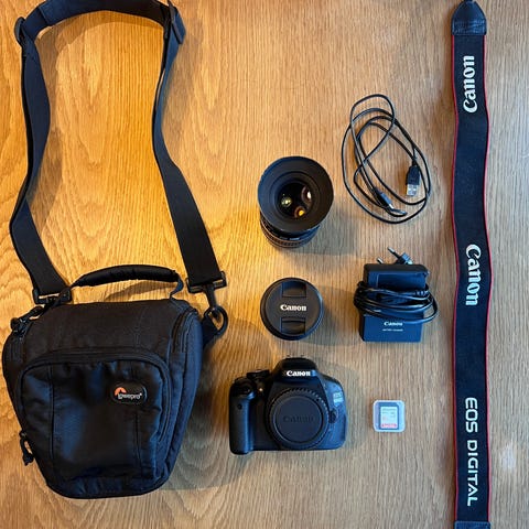 Selger mitt speilreflekskamera Canon EOS 600D. Kun brukt såvidt i skolesammenheng i et par mnd. Kjøpt nytt i 2013. Selges med kameraveske. Les mer om kameraet her: