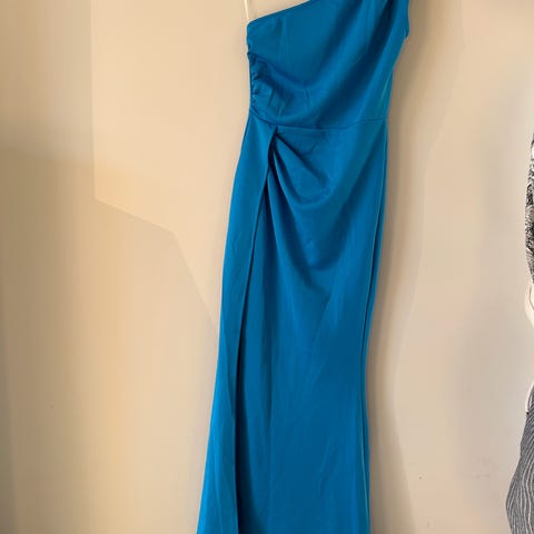 Lang blå kjole med splitt