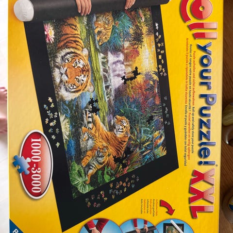 Praktisk og plassbesparende puslespill matte med plass til minst 2000 biter. Pusle på matten og rull puslespillet sammen når du trenger bord/underlag til andre aktiviteter og for oppbevaring. Matten er i filt stoff og inkluderer en papptrommel med to festestropper. Puslespillet er på 1500 biter. Flott motiv og det er komplett. Perfekt til hobby-entusiaster og som Jule-gave. Kan hentes i Kristiansand området, sendes mot kjøpers porto eller lage Fiks Ferdig annonse.