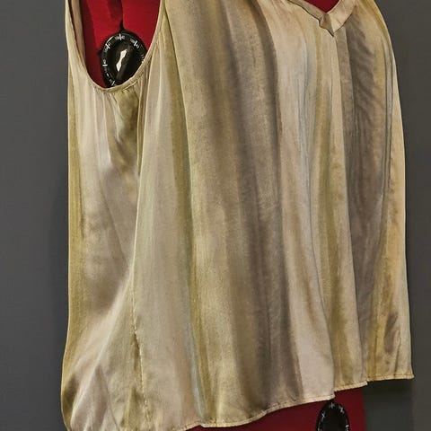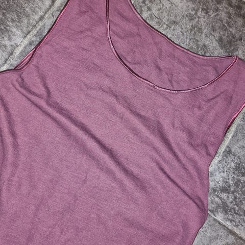 Ubrukt silketopp str.L. Mosegrønn farge men om merkelapp sprettes av kan den fint vrenges og brukes på andre siden (lilla). Sendes mot porto.