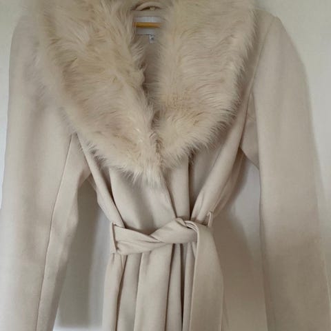 Pen kåpe fra VILA, størrelse L. Fargen er aprikos aktig 🧡 veldig fin!! Knyting rundt livet. Pent brukt.