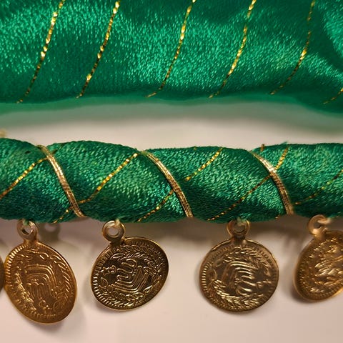 240 cm langt pluss duskene. Belte eller som annet tilbehør.