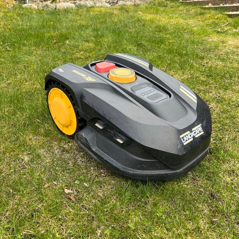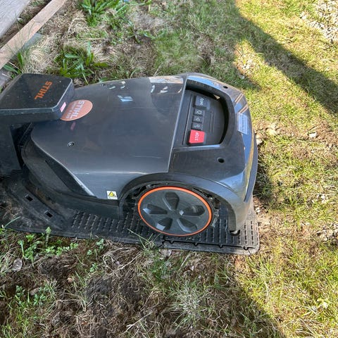 Selger robotklipper med garasje og lader. Kapasitet 1000m2