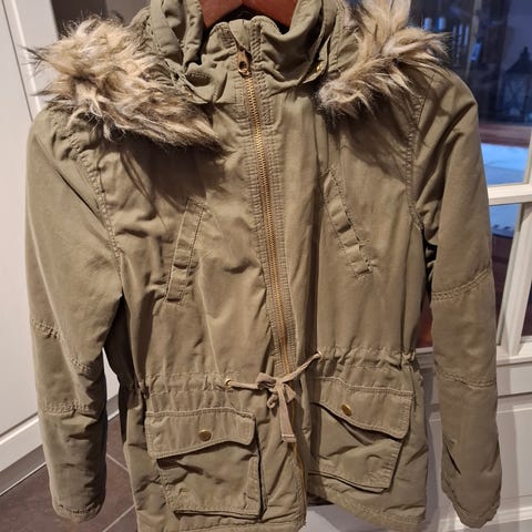 H&M vinterjakke til jente i størrelse 152. Jakken har avtagbar hette med pelskant.
