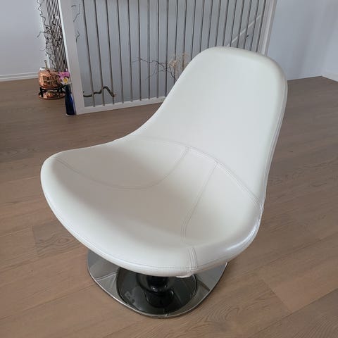 Robust tross stilren og slank i designet. Tung, så den står godt. Noe hard/ fast sittekomfort.