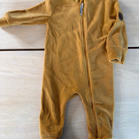 Fint brukt fleecedress. Er en slags okerfarge. Vanskelig å få fram fargen på bilde. Er i str 74, men liten i str så er meir str 68