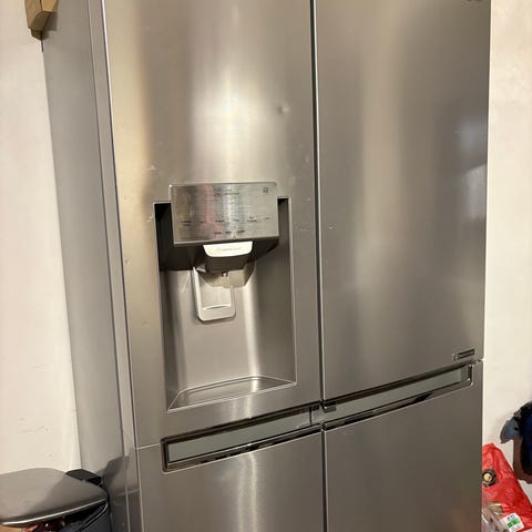 LG GSL361ICEV Side-by-Side kjøleskap i rustfritt stål. Kjøleskapet har is- og vanndispenser på døren, flere hyller og skuffer for oppbevaring, samt inverter linear kompressor med 10 års garanti. Modellen har et moderne design med stor kapasitet, egnet for oppbevaring av mat og drikke i hjemmet.