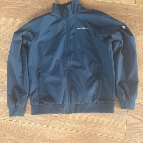 Tynn mørkeblå / navy Emporio Armani jakke, størrelse 16A / 170. Reversibel, med hette. Vil også passe XS herre, small kvinne