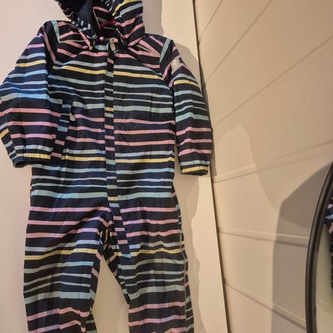 Noe farget i baken, samt noen små flekker som ikke går av i vask (løvetann?). Ingen slitasje!