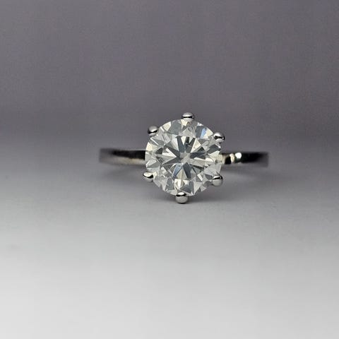Nydelig enstens diamantring i hvitt gull. Klassisk modell 6-klørs fatning.