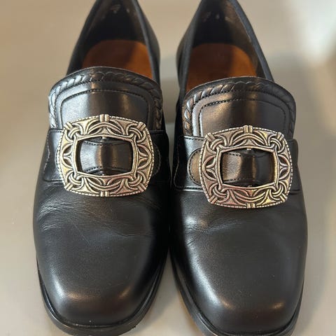 Pent brukte bunadssko, kun brukt en sesong før de ble for små. Skinn. Ny pris 1399.