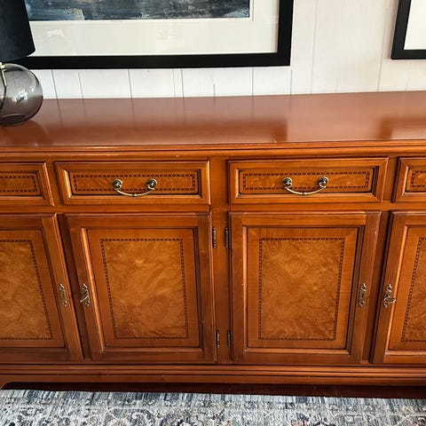 Indisk tresort, produsert i India, kjøpt i Oslo. Bredde 152, dybde 44 og høyde 85 cm. Tung, massiv tresort. Se bilder.