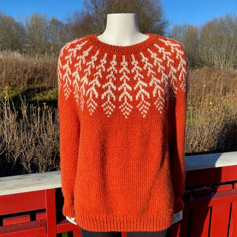 Selger en helt nydelig hjemmestrikket genser. "Hyttegekos genser" .