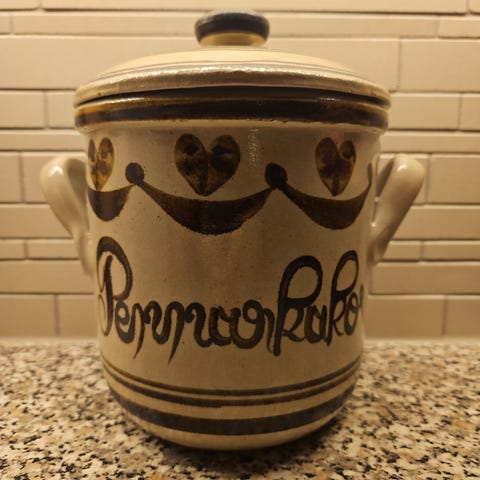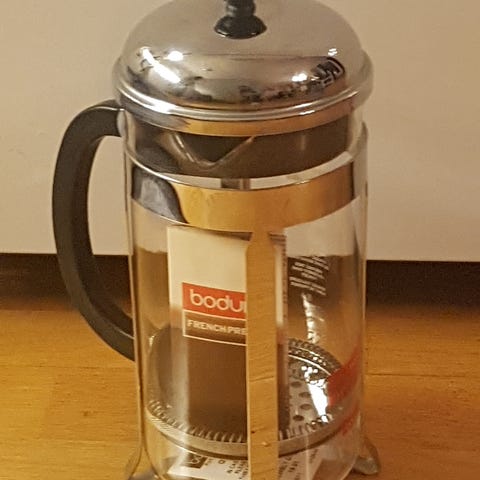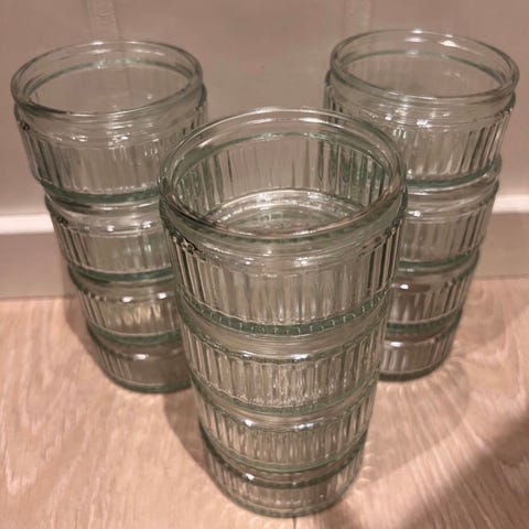 Krusene er laget av grått glass med håndtak i tre. Passer til servering av varme og kalde drikker.