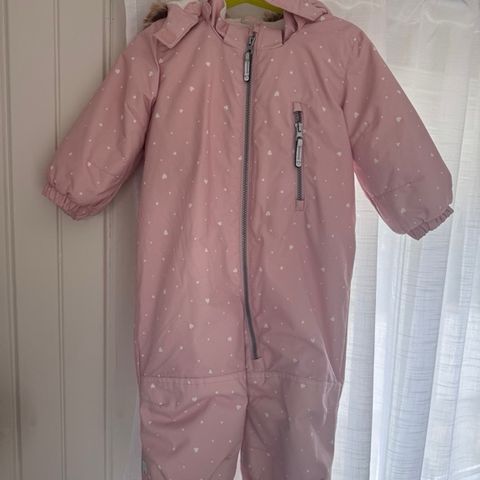 Dressen har avtagbar hette og elastiske mansjetter ved armer og ben for bedre passform. Materialet er egnet for barnets komfort og bevegelsesfrihet.
