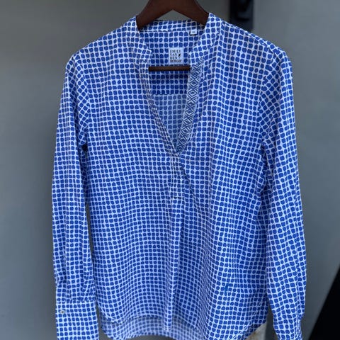 Nydelig bluse i fin viskose kvalitet fra «.Emely Van Den Bergh». Blusen er svært lite brukt, og har mye bruk igjen. Blusen fremstår som ny . Den har ingen skader eller merker.