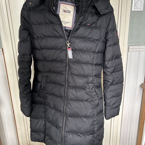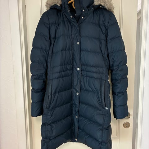 Flott Dun Tommy Hilfiger kåpe/parkas i mørk blå/sort.