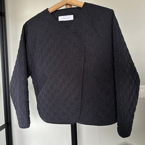 Utrolig søt med feminine «puff»skuldre, kan snøres inn i livet slik at den blir smal.