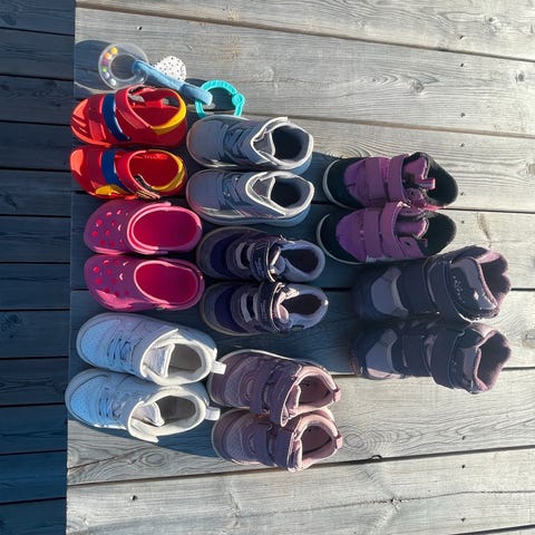 Ecco Exani barne sko i forskjellige størrelse unisex, designet for unisex bruk. Skoene har en kombinasjon av rosa og beige og svart farger, med borrelås og elastisk snøring for enkel tilpasning. Materialet består av en blanding av tekstil og syntetisk materiale, egnet for daglig bruk for barn. Jeg selger alle sammen 800 kr og selges også separat pr. Stk 80 Kr.