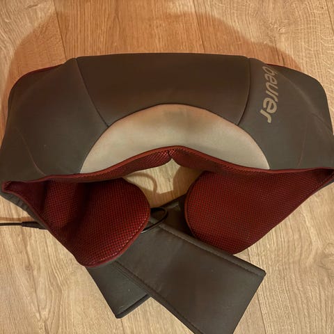 Beurer 4D Neck Massager i hvit farge. En massasjearm designet for nakkeområdet med 4D massasjefunksjon som gir dyptgående massasje. Produktet er laget for å tilby avslapning og muskelavspenning i nakke og skulderregionen. Veldig fin å bruke hvis det bor stramt rundt nakke området. Selges pga lite bruk😊