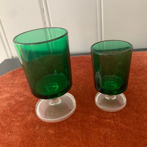 Glassene ser helt ubrukte ut. Jeg har vasket de i oppvaskmaskin og det har gått bra.
