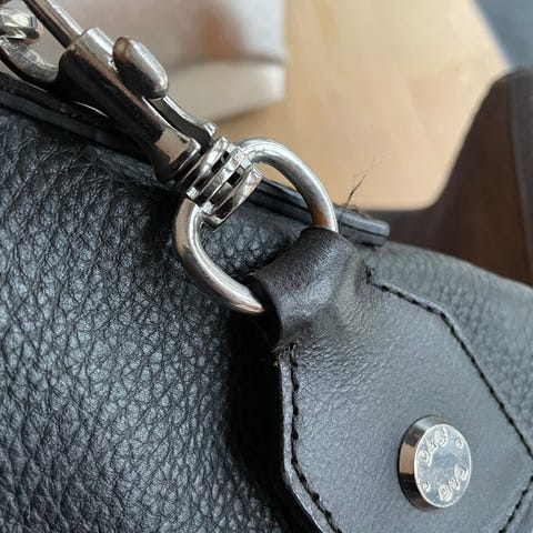 Det er litt slitasje på håndtaket og baksiden, men det gir vesken litt sjarm