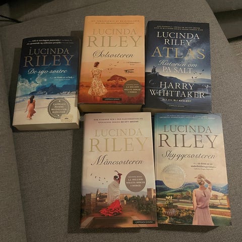 Lucinda Riley Romanser Bokserie, inkludert flere titler som 'Englemakersken', 'Delikatessen', 'Minnesotastjerna', 'Diamantmysteriet', 'Atlas', og flere. Bøkene er på norsk og dekker ulike historier og temaer innen romantikk og drama.
