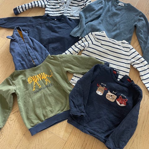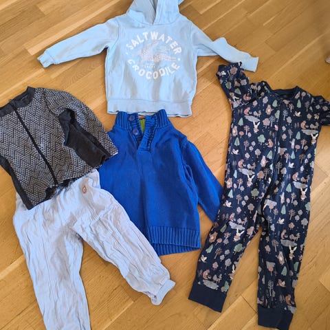 Klespakke består av 1 kosedress, 1 hettegenser, 5 genser og 1 fleecejakke.