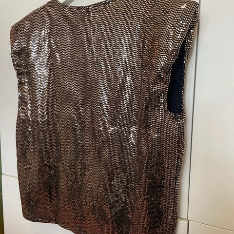 Gina Tricot Rosa Bluse i størrelse S for kvinner. Blusen har kort erme og er dekorert med rosa paljetter. Egnet for festlige anledninger eller som en del av en stilig garderobe.