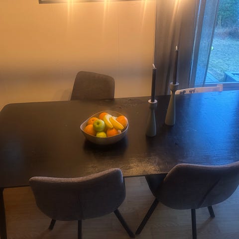 Fint brukt. Er et lite hakk/hull i øverste plate og noen små riper. Høyde kan justeres.
