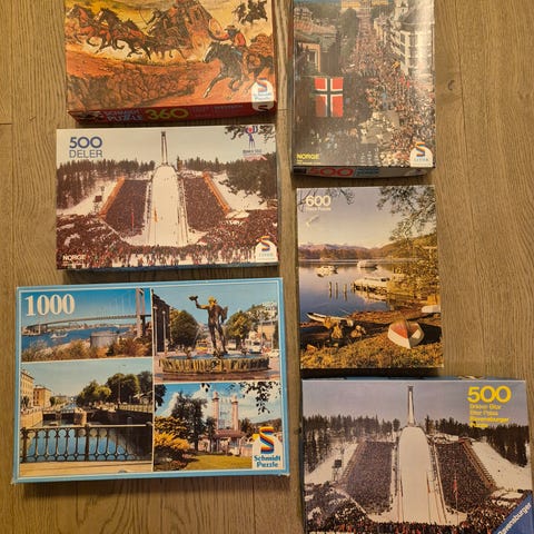 3 stk gamle puslespill selges samlet. Ingen esker. 20 brikker per puslespill.