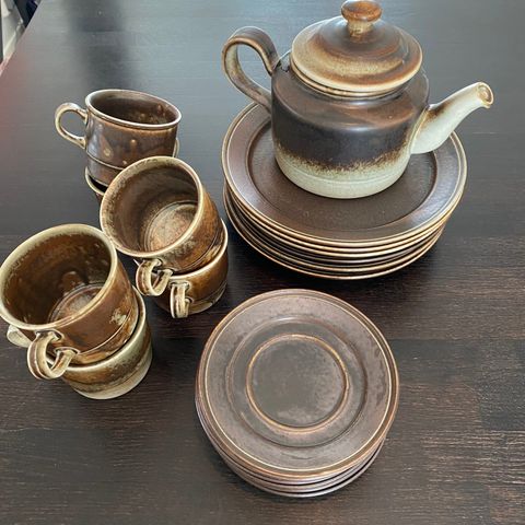 Lava servise fra Porsgrunn porselen, 1 tekanne og 1 sukkerskål og 4 kopper, selges kr 150.-