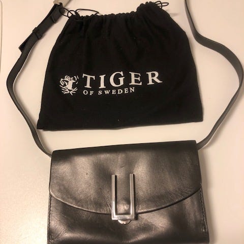 Tiger of Sweden skulderveske i svart lær for dame. Vesken har to håndtak, en klaff med spenne foran, og flere lommer innvendig for organisering. Materialet er slitesterkt lær, og designet er egnet for daglig bruk.