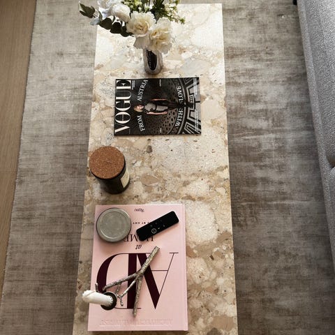 Sort metall understell, sort ekte skinn polstret sete, sort marmor sidebord.